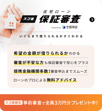 住宅ローン審査選びには、最短15分で、金融機関のお墨付きがもらえる『スゴい速い住宅ローン審査』がおススメです。ぜひ、一度お試しください!